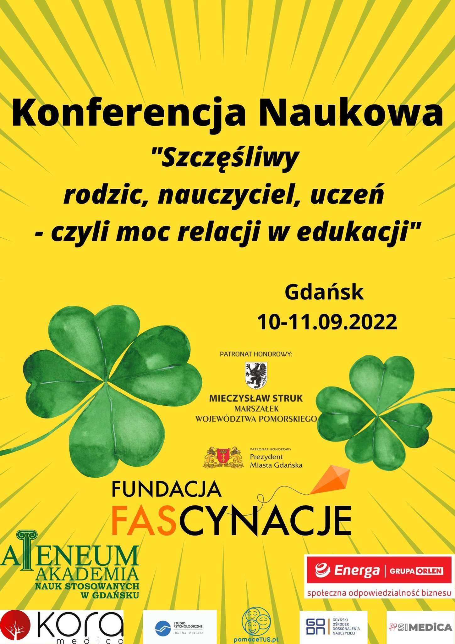 ? Z dumą objęliśmy patronatem świetną Konferencja Naukowa „Szczęśliwy rodzic, nauczyciel, uczeń – czyli moc relacji w edukacji”, która odbędzie się w Gdańsku 10-11 września w siedzibie Ateneum-Akademia Nauk Stosowanych w Gdańsku. Dziękujemy za zaproszenie Fundacja FASCYNACJE i zachęcamy do udziału. Jest opcja bezpłatnego udziału stacjonarnego oraz online. Do zobaczenia! ?