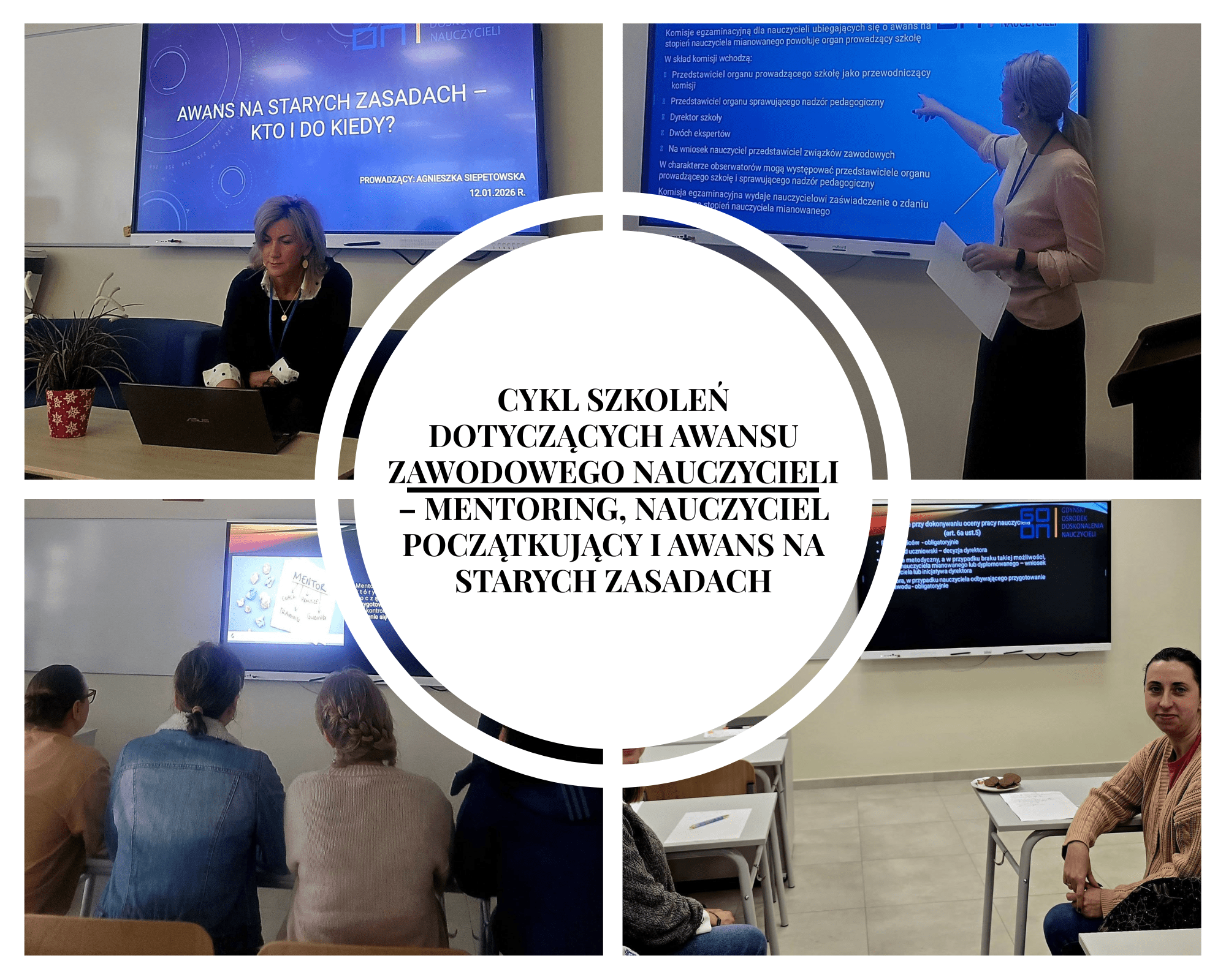 Szkolenia przeprowadzone przez doradcę metodycznego GODN, Agnieszkę Siepetowską, stanowiły cykl trzech odrębnych spotkań poświęconych zagadnieniom awansu zawodowego nauczycieli.