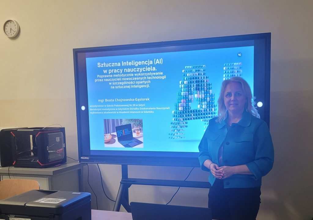 19 marca nasza doradczyni Beata Chojnowska-Gąsiorek poprowadziła szkolenie dla trójmiejskich nauczycieli podczas którego pokazała jak mądrze i świadomie korzystać ze sztucznej inteligencji w edukacji. Mówiła nie tylko o możliwościach AI, ale też o tym, jak powinien wyglądać dobry prompt i dlaczego ma to dziś tak duże znaczenie. Dużo uwagi doradczyni poświęciła również zagrożeniom – zarówno z perspektywy uczniów, jak i nauczycieli. W świecie, w którym AI staje się codziennością, kluczowe jest odpowiedzialne podejście i umiejętność krytycznego myślenia.
