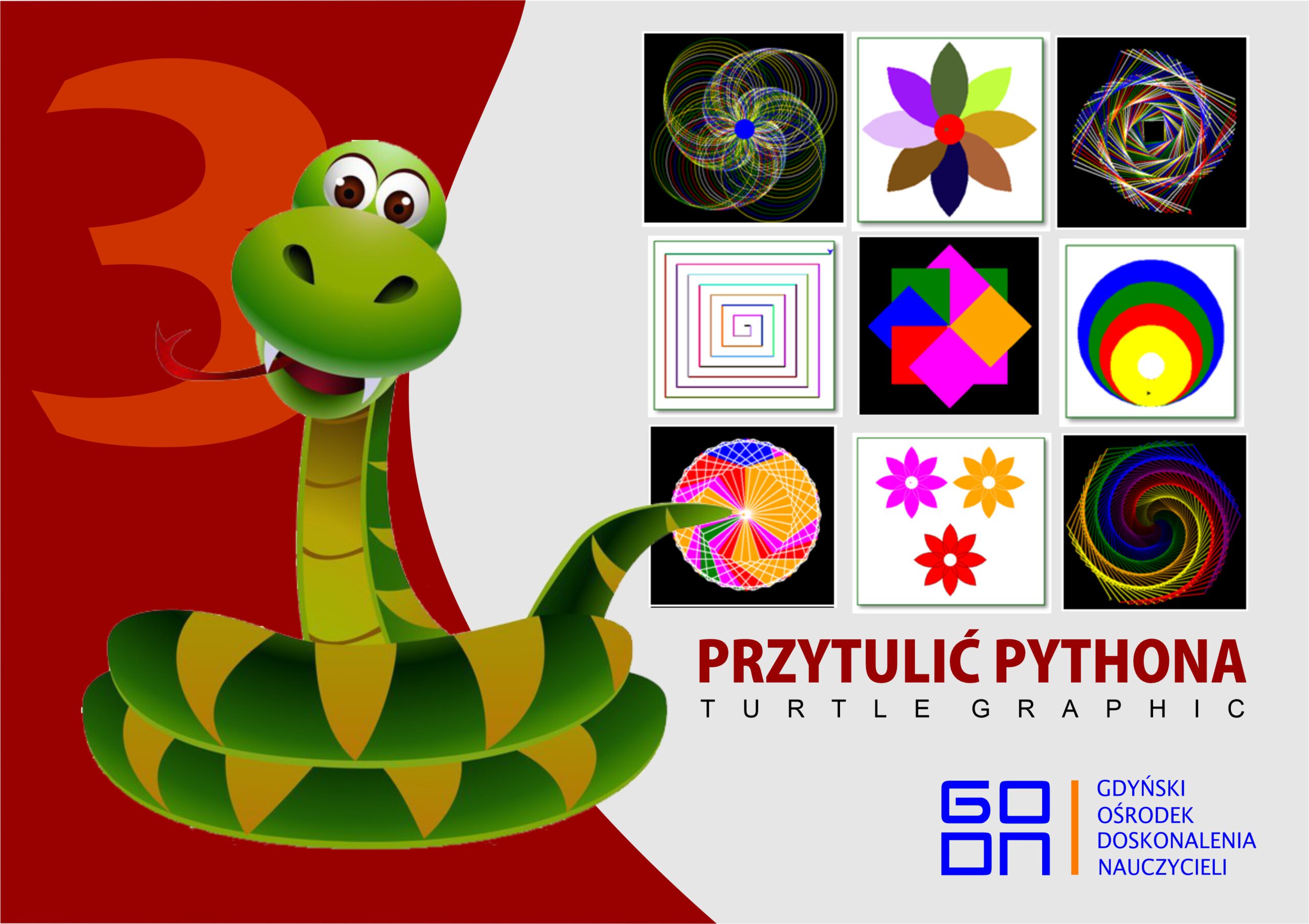 29 kwietnia zakończyliśmy warsztaty programowania w Pythonie. Trzecia część kursu „Przytulić Pythona, czyli Python Turtle Graphic” była nie tylko zakończeniem serii szkoleń, ale także uwieńczeniem zdobytej dotąd wiedzy. W serii barw RGB wyczarowaliśmy za pomocą pętli for i while niesamowite obrazy, które nie tylko cieszyły efektem wizualnym, ale stały się też bazą zadań dla uczniów.