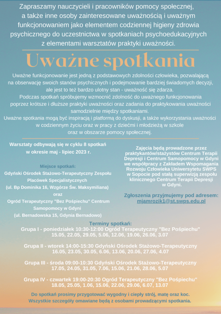 „Uważne spotkania” – zaproszenie na cykl warsztatów