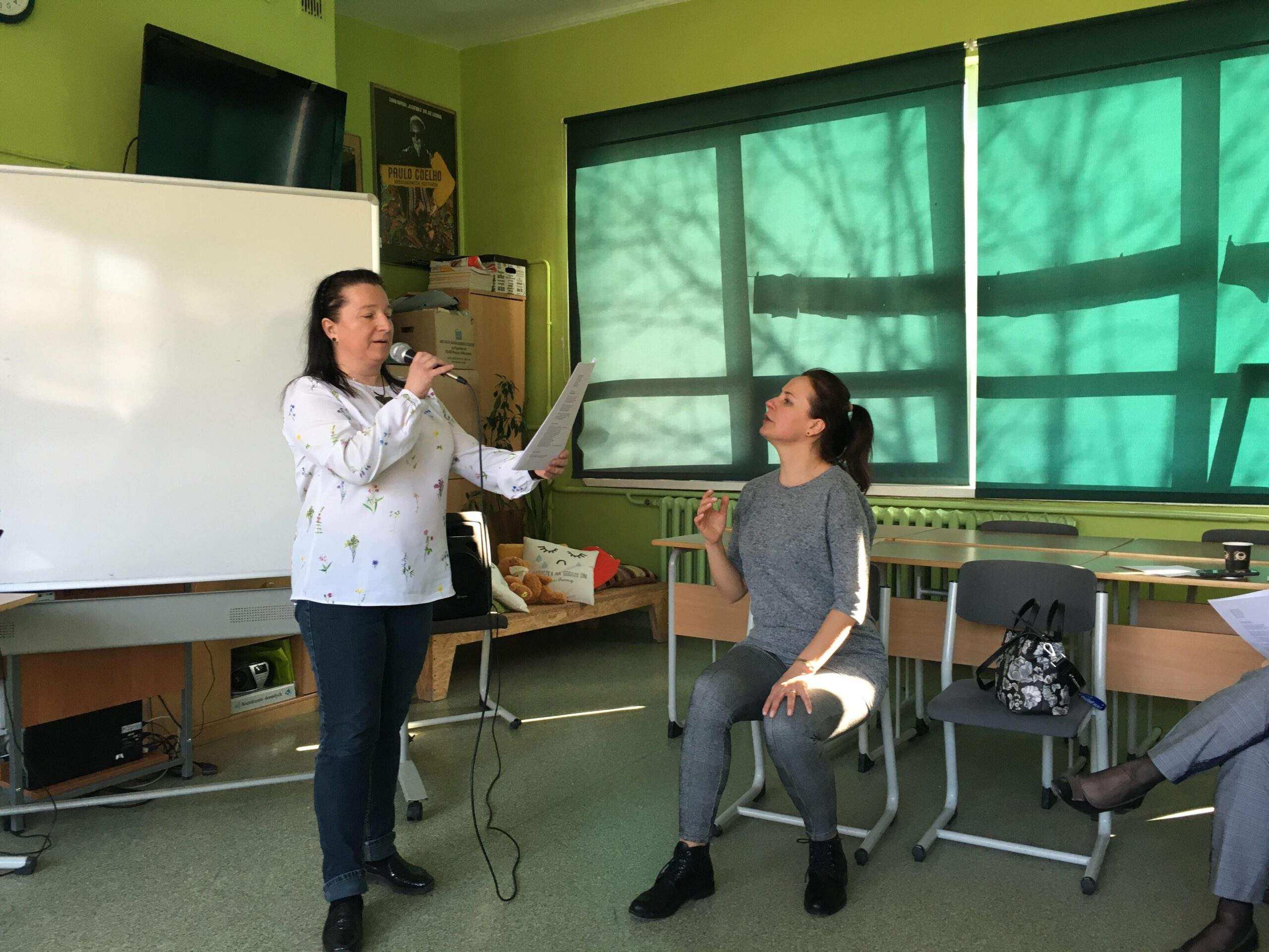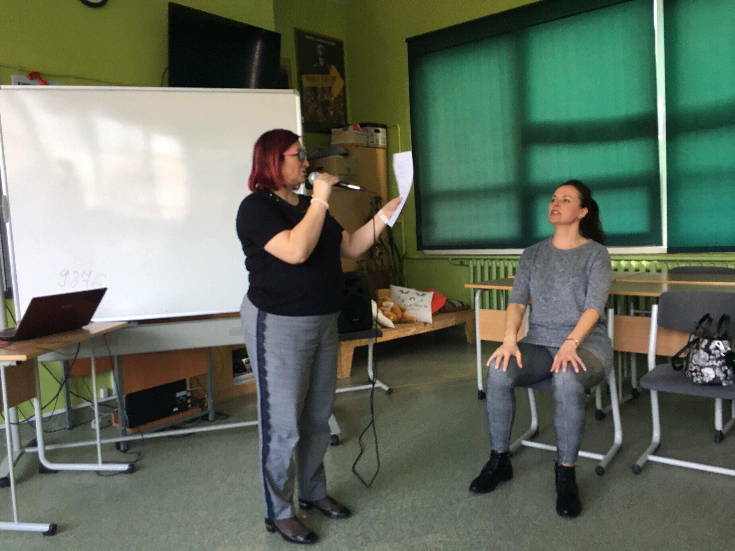 W czwartek 28 marca w siedzibie GODN odbyło się 3-godzinne szkolenie warsztatowe w ramach Vademecum. Dyrektorzy placówek gdyńskich mieli okazję szlifować swoje umiejętności z zakresu emisji głosu, pracy z mikrofonem oraz autoprezencji. Prowadzone przez aktorkę panią Agnieszkę Babicz-Stasierowską w przemiłej atmosferze zajęcia były okazją do utrwalenia prawidłowych mechanizmów operowania głosem.